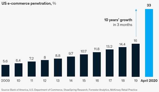 According to a recent McKinsey Study: In a matter of 90 days, we have vaulted forward 10 years in consumer and business digital adoption.