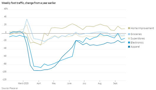 Source: How Coronavirus Changed the Retail Landscape; WSJ, 10/06/20