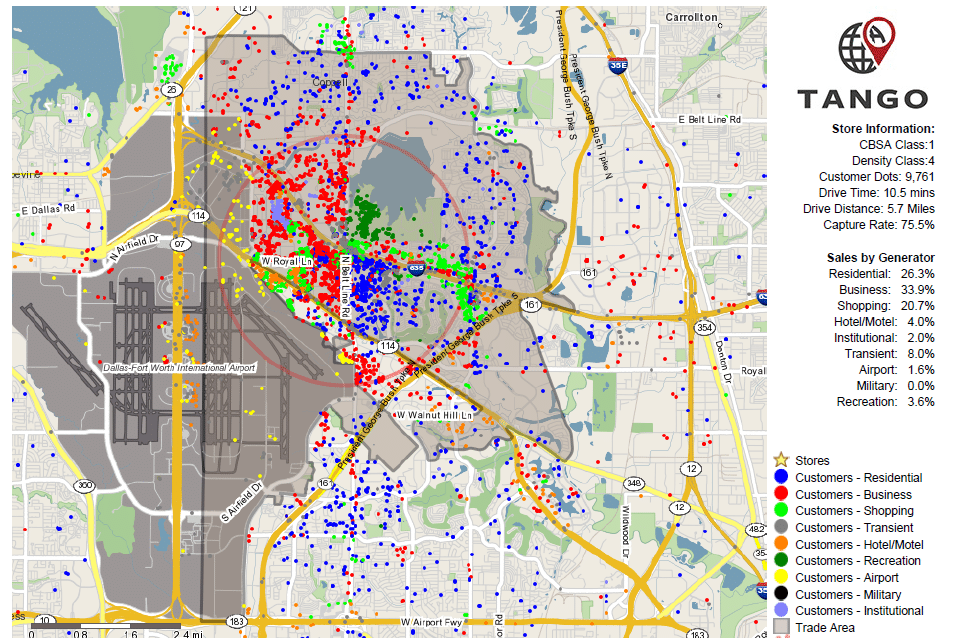 It’s not enough to simply have this data. You need tools to organize and analyze it in meaningful ways. Tango Transactions is a specialized market-planning and site selection solution used by enterprises all over the world. Our tools help you leverage your proprietary customer data and give you access to a geographic information system (GIS) that empowers you to analyze the demographics of your potential site.