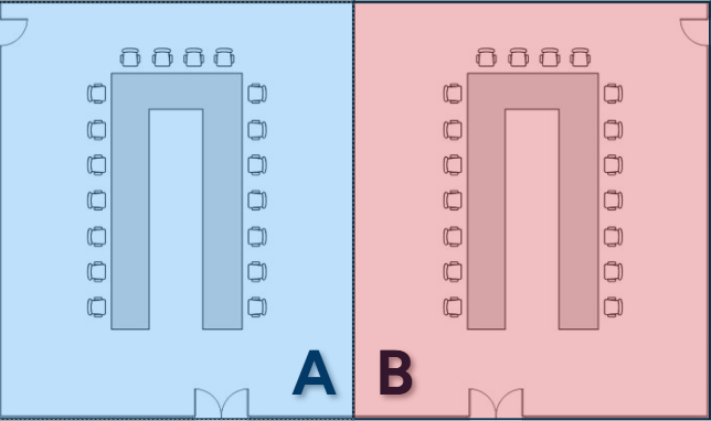 Suppose you have a big room you use once a month, or once a quarter. You can use partitions to turn it into two or more smaller rooms for groups to use the rest of the time. Let’s call these two rooms Room A and Room B in your reservation system. When your regular meetings occur and the entire space is needed, Tango Reserve enables groups to reserve Room A+B, which prevents anyone from booking Room A or Room B. And it works the other way too—when Room A or Room B are reserved, Room A+B is unavailable.