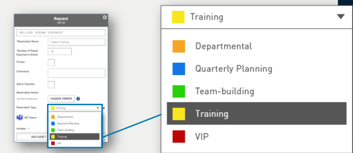 Within Reserve, categorizing types of reservations can be helpful for understanding how your collaborative spaces are being used, but it’s also a simple way for meeting organizers to identify meetings that can or can’t be moved. For example, you might use a label like “VIP Meeting” or “Client Meeting” when scheduling a reservation for a high priority meeting that shouldn’t be moved, even if there’s a conflict.