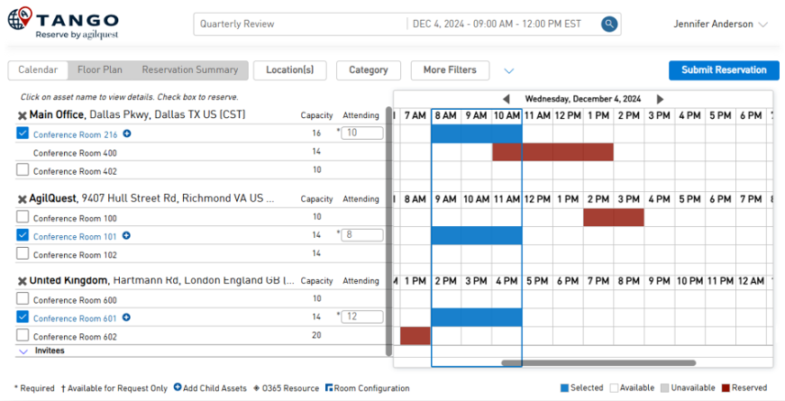 In Tango Reserve, everyone can set their own personal “Favorite Assets” based on their preferred rooms, and a “Quick Pick” view gives them faster access to these spaces from the app.