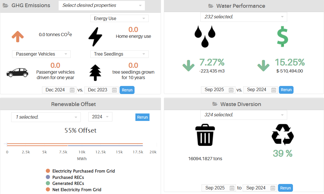 Eliminate manual spreadsheets and disconnected systems with automated ESG reporting and standardized outputs across frameworks like CDP, GRESB, LEED, and ENERGY STAR.