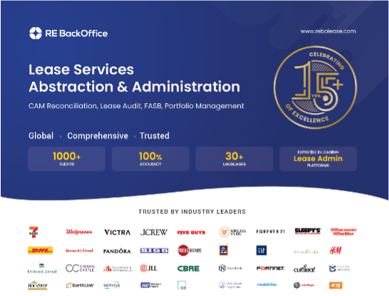 RE BackOffice Inc. (REBO), is a premier provider of lease abstraction, administration, lease audit and lease support services. We are proud to be a trusted partner, for 15+ years, to leading retailers, REITs, property owners/managers, and corporate accounts seeking a strategic advantage.